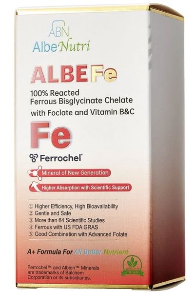 AlbeFe is a food supplement containing Fe Bisglycinate Chelated (in the form of amino acid chelate) – highly bio-available form of iron which give higher absorption than other form of iron. enriched with new generation folate and liposomal vitamin C, B6, B12. Designed for optimal iron uptake.
